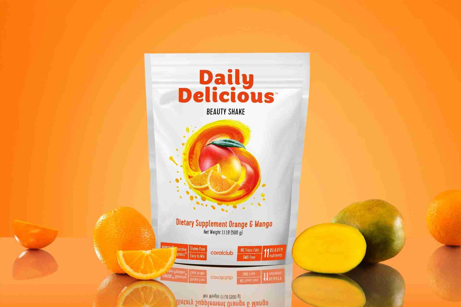 Daily Delicious Beauty Shake narancs és mangó ízű italpor édesítőszerekkel