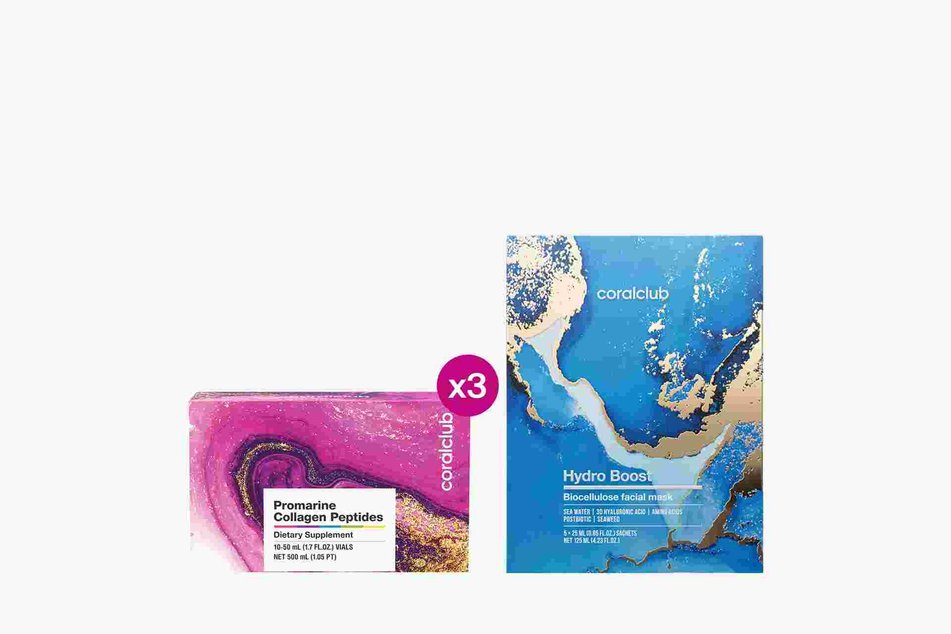 Promarine Collagen Peptides Set (1 hónapos kúra) & Bio-cellulose Face Masks Hydro Boost (5 tasak)