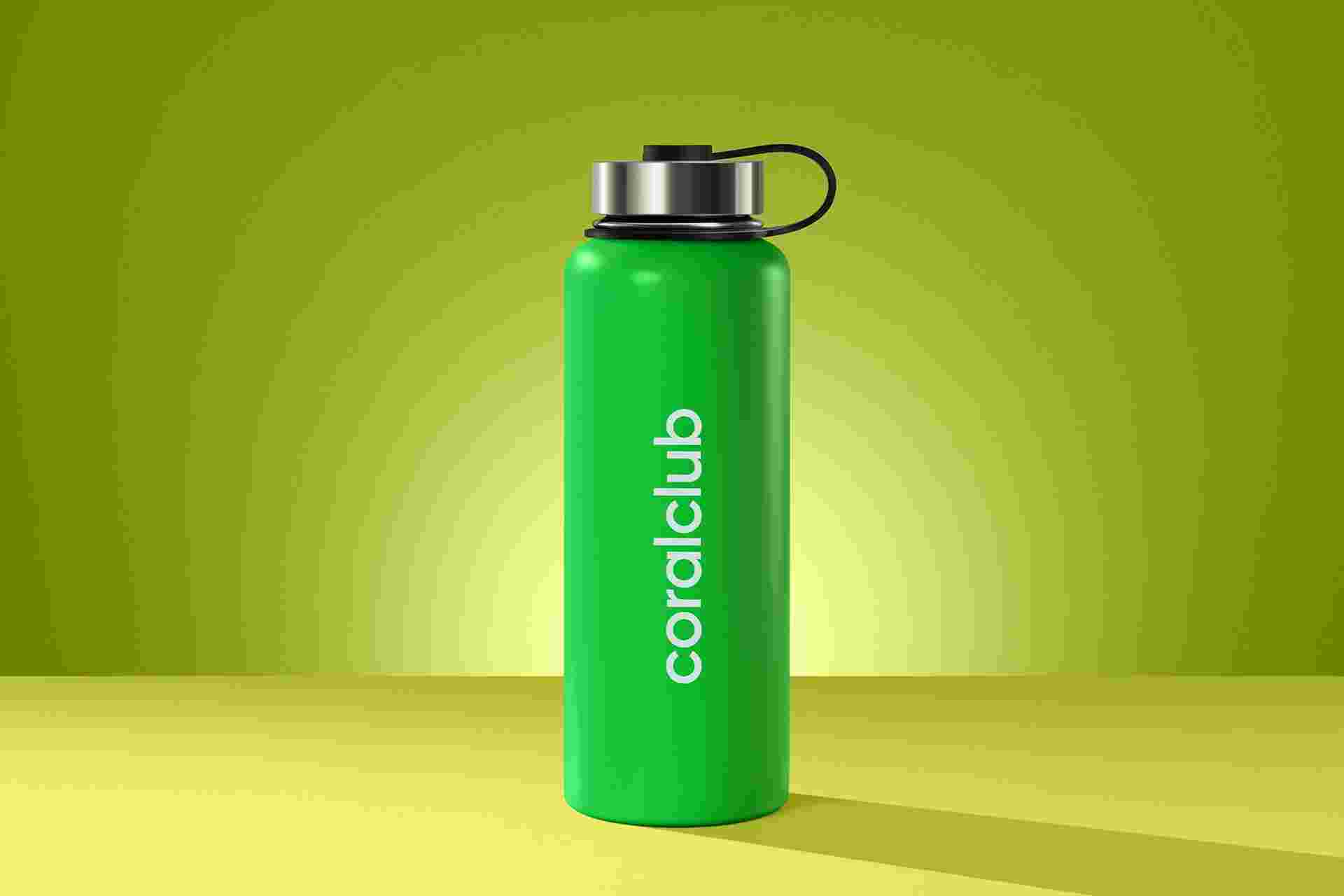 Tartós, rozsdamentes acélból készült vizespalack.